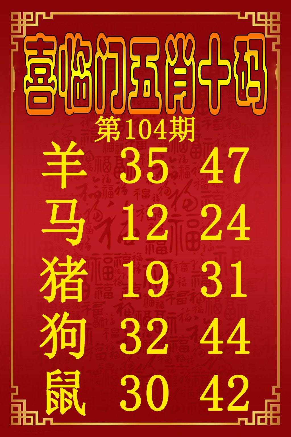 | 103期推荐⑤肖:牛羊鸡鼠虎 |