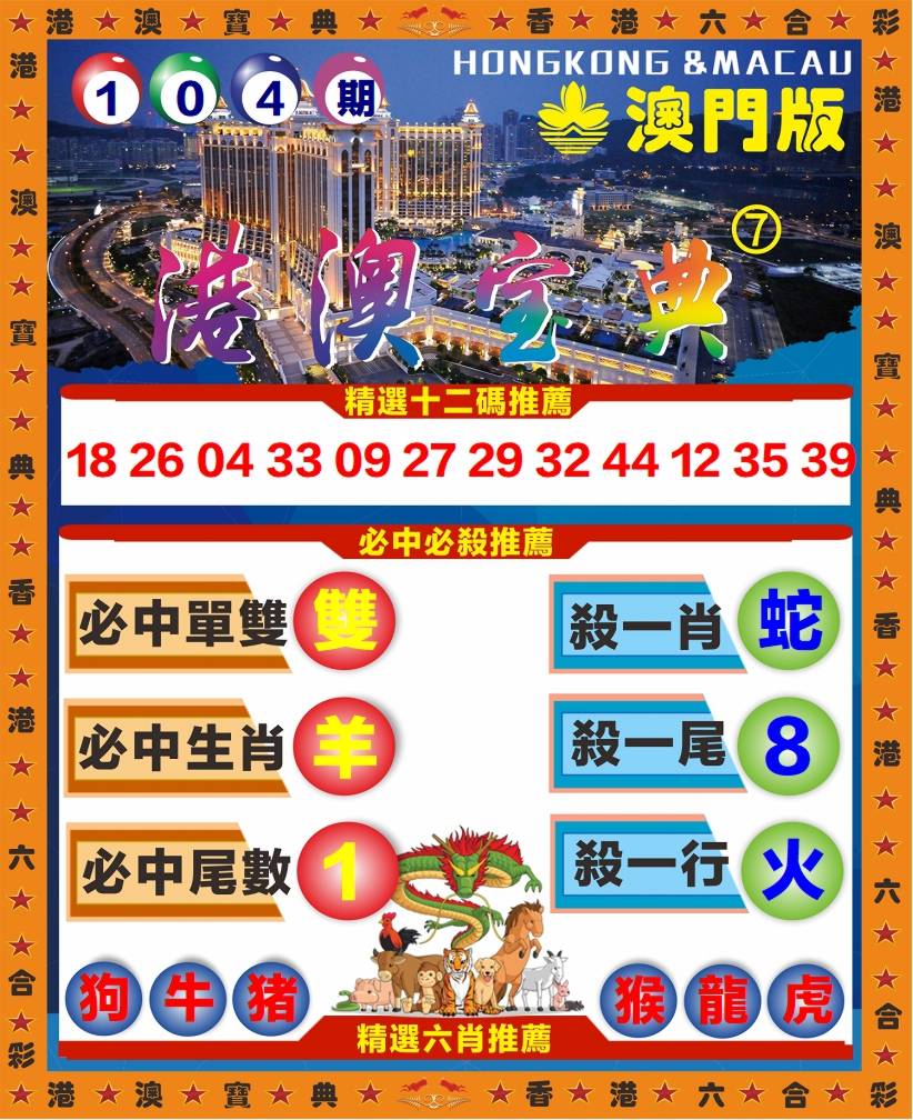 104期⑦肖【鸡龙马虎猴羊】
